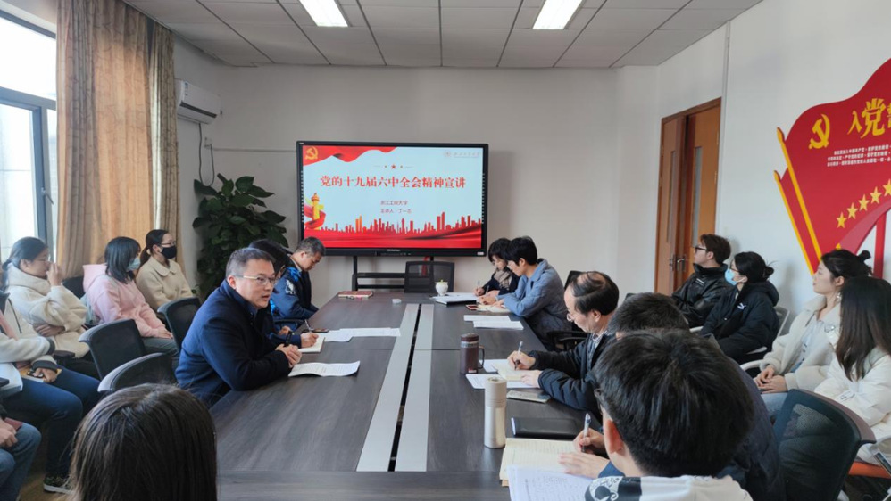 丁一志作十九届六中全会精神主题宣讲,回顾讲解了十九大以来历次中央全会,深刻阐释了党的十九届六中全会的里程碑意义,从“一个主题”“两个确立”“三次历史性飞跃”“四个伟大成就”“五个方面历史意义”“十个坚持”历史经验等六个方面,全面解读了六中全会的丰富内涵与核心要义,并详细解读了《关于若干历史问题的决议》《关于建国以来党的若干历史问题的决议》《中共中央关于党的百年奋斗重大成就和历史经验的决议》三份决议的精神内涵,叮嘱在座师生党员们要提高政治站位,深刻认识学习领会党的十九届六中全会精神的重大意义,用实践实干成效体现学习成果,推动校院两级工作高质量发展。