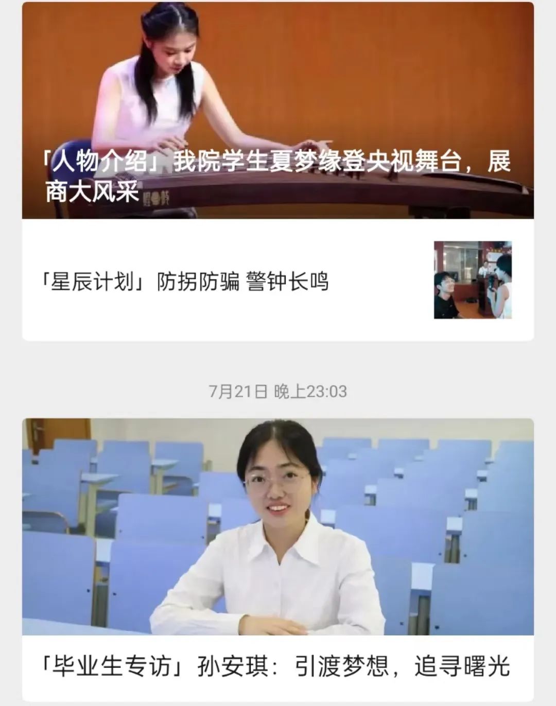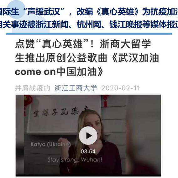 近年来,91视频 宣传阵地拓展至“一微一视一站(微信、视频号、网站)”,宣传稿件达1300余篇,阅读量超过10万+。推出“百人百年话初心”、“校友·榜样的力量”、优秀毕业生专访等系列专栏。91视频师生抗疫事迹被校外内媒体广泛报道,如91视频 学子为武汉加油祝福视频被人民日报转载,留学生为抗疫加油、投身疫情防控相关事迹被中新网、浙江新闻、钱江晚报等媒体报道和转载;91视频 学子庆祝建党百年作品《在灿烂阳光下》被学习强国报道。