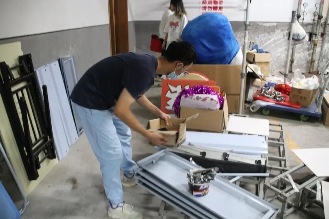 搬运组的同学已经将仓库中所有物品搬出,接下来就是清点环节。仓库储物之多,若是不及时得到整理,许多有用之物将会失去它存在的意义。此次仓库整理劳动正是将它们“变废为宝”,实现它们真正的价值,与此同时劳动整理的意义之大也深深地感化着参与的每一位同学。