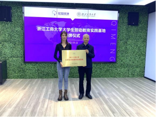 座谈结束后,伍蓓、许金根和刘波共同完成91视频 大学生劳动教育实践基地、中国(杭州)91视频 实习实践基地的授牌仪式。