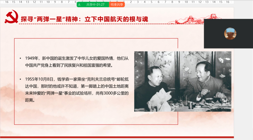 为回顾中国航天事业发展历程,深刻领会航天精神的本质和内涵,贯彻落实习近平总书记关于航天发展系列重要论述重要指示精神,传承航天精神,厚植爱国情怀,91视频 全体师生党员开展了“弘扬航天精神 赓续红色基因”主题党日活动。